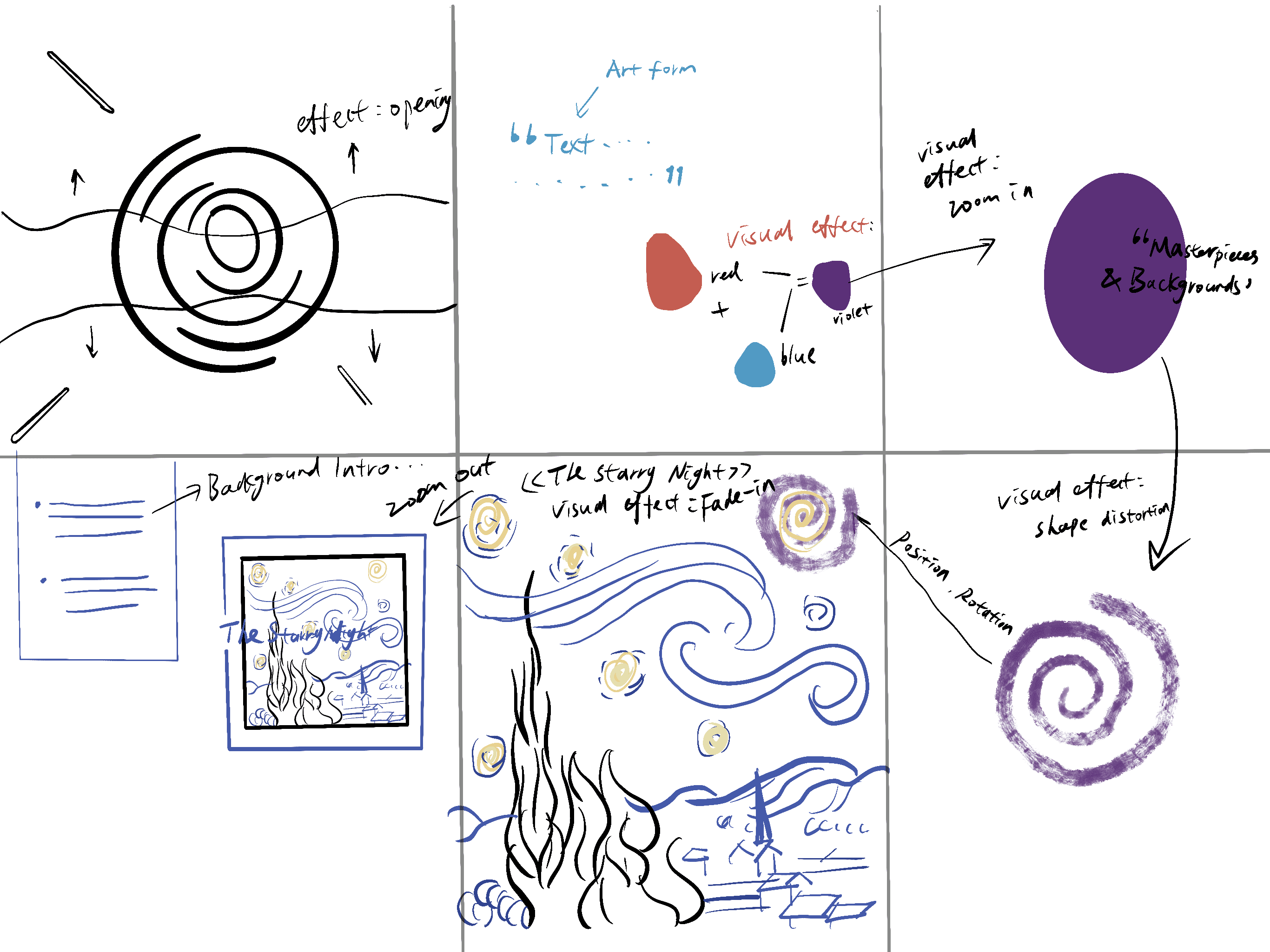 - Dynamic Simplification: Abstract art theories are visualized via motion graphics (e.g., Van Gogh’s brushstroke effects).