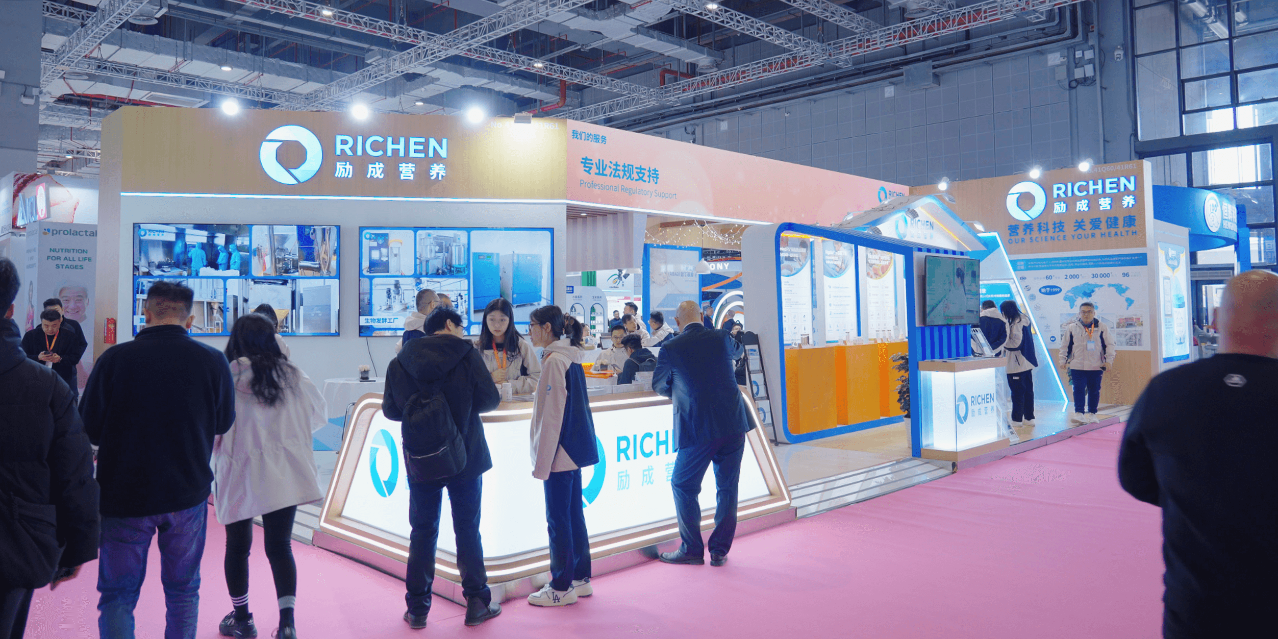 2025年3月17-19日,FIC在上海国家会展中心举办,规模达17万平方米,汇聚1,632家国际知名展商,吸引15万名国内外专业观众,是全球规模最大的食品添加剂和配料品牌展会。作为RICHEN展会的主要设计负责人,以“专业赋能创新”为核心设计理念,通过系统化的视觉语言精准传递品牌在行业的实力与权威性。展台空间规划严格遵循品牌CI系统,运用模块化设计手法差异化呈现产品矩阵的专业特性,结合动态数据可视化打造兼具国际审美与行业专业度的品牌展示,强化品牌在食品科技领域的专业形象。